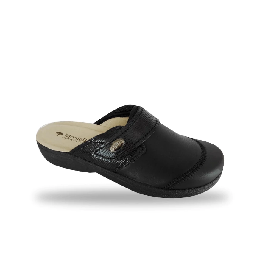 Bütyökvédő gyógypapucs fájós lábra  DrMonteBosco klumpa 1468 Nero elasztikus kímélő gyógypapucs