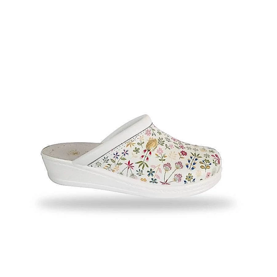 Az ismert olasz márka saját tervezésű egészségügyi lábbelikkel vívta ki a nemzetközi elismerést. A virágmintás klumpa a fokozódó népszerűsége köszönhető annak, hogy a felsőrész vidám, nőies jelleget ad a papucsnak.